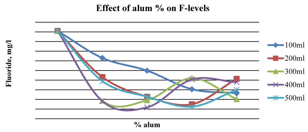Figure 8: Effect of alum concentration on F- levels in Karachuonyo water.