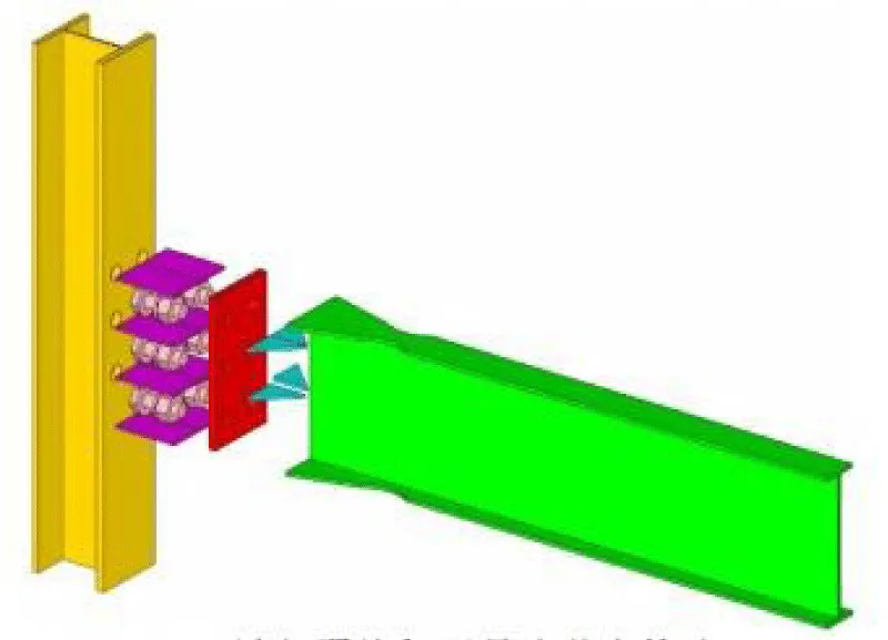 The flange widening bone node is composed of an H-shaped steel column, expanded flange bone beam, end plate, and bolts. As shown in the figure. Steel column, beam, and end plate are all made of Q235 steel, and bolts are made of 10.9 grade M16 high-strength bolts. Expanded flange bone beam and end plate can be welded and prefabricated in the factory, and the end plate and H-shaped steel column flange are connected by high-strength bolts and gaskets. Expanded flange end plate bone node can be used for the assembly of conventional I-shaped steel bars and box-shaped steel bars. It has a simple structure, convenient construction, high stiffness and strength, and can maintain good bending bearing capacity under earthquake action. The various components of the node can be prefabricated in the factory and directly transported to the construction site, which improves construction efficiency and reduces construction costs (Figure 1).